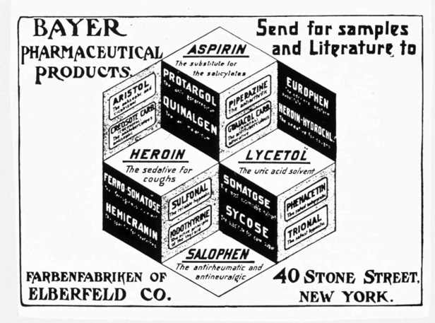 In the late 1890s, the German drug company Bayer began marketing a more powerful form of morphine, diacetylmorphine. This drug was advertised as a non-addictive alternative to morphine –not addictive at all – and was presented as a “cure” for morphine addiction as well as a replacement for morphine. Bayer saw it as a wonder drug that could conquer the effects of many illnesses and gave it a trade name to suggest its power: Heroin (likely to be pronounced with the emphasis on the second syllable). Heroin was sold unrestricted and without a prescription.